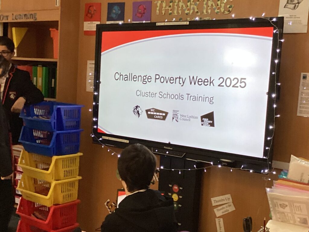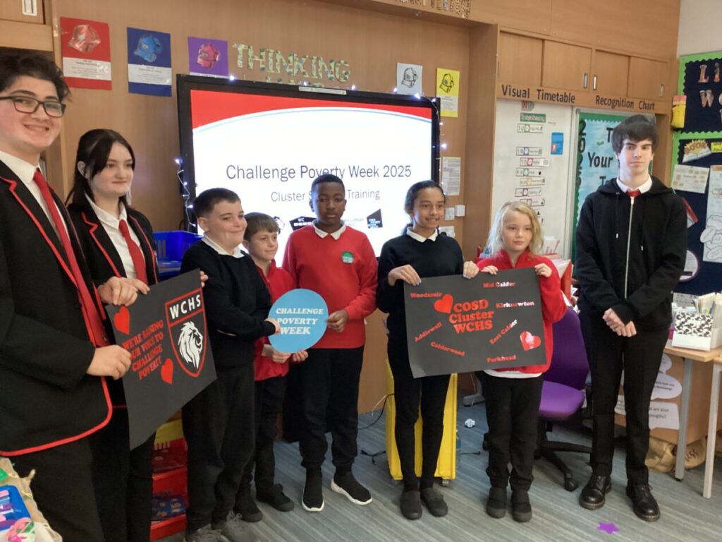 Today we were very lucky to have S6 from West Calder high visiting us today to explain challenge poverty week. They talked about lunches and uniforms and highlighted what actions we can take. This is a Scotland- wide campaign that challenges the stigma and discrimination often associated with poverty.