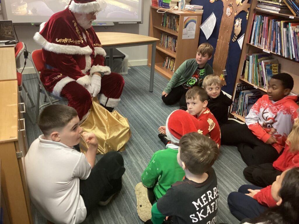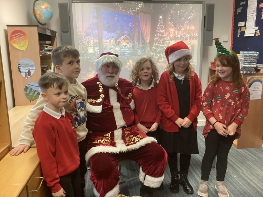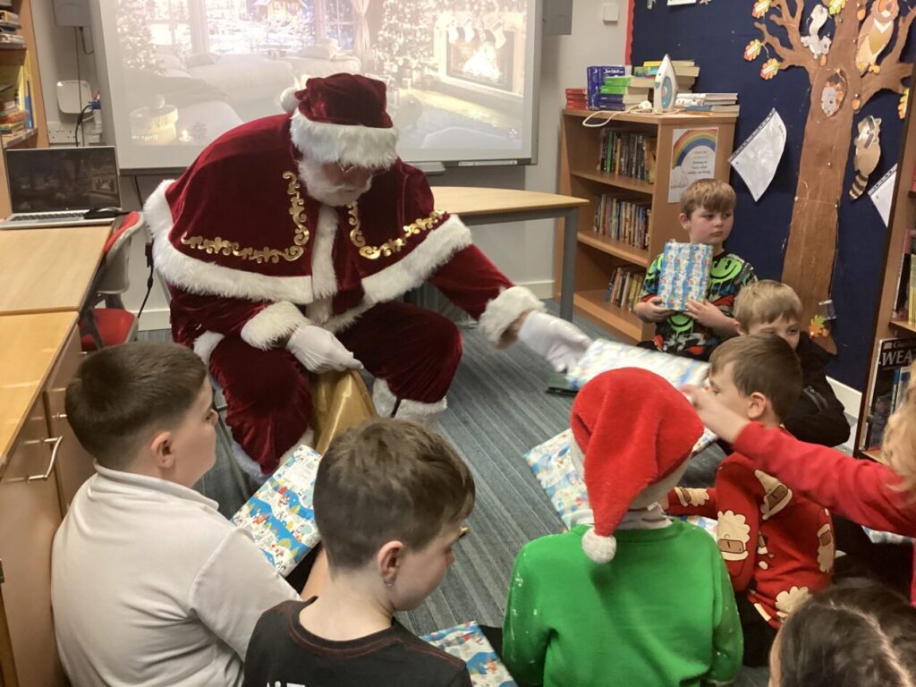 Yesterday we had a surprise visit from Santa! We all got to meet him in Woodmuir and he asked us all what we would like for our Christmas. Then we all got a special gift and our photograph taken too. Our photographs will be ready to send home today to our grown ups and we hope you like them.
