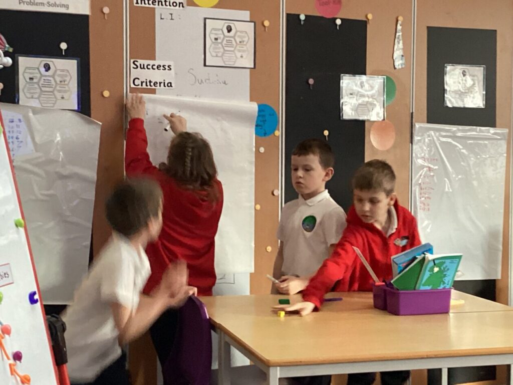 Today we all worked together to solve our maths problem today. We were focussing on the mathematical language and the word ‘ sum’. We also talked about Math Talk Moves and using Reasoning in our groups.